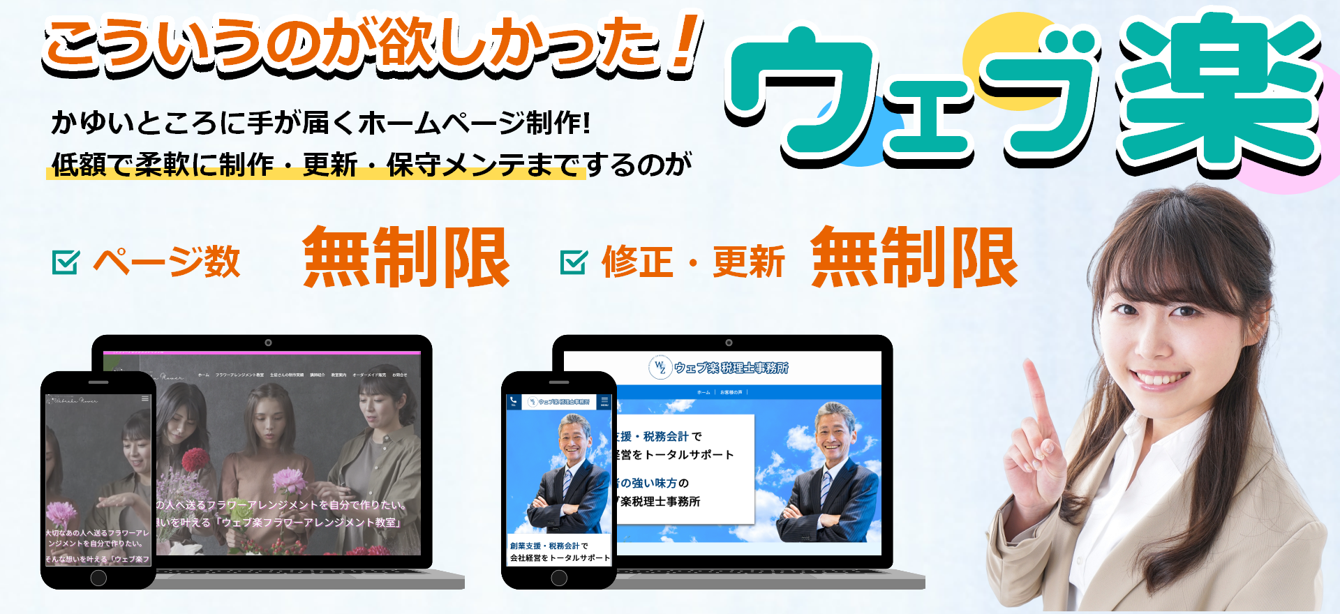 「ホームページを持ちたいけど高額な費用は掛けたくない」という方はぜひウェブ楽へご相談ください!