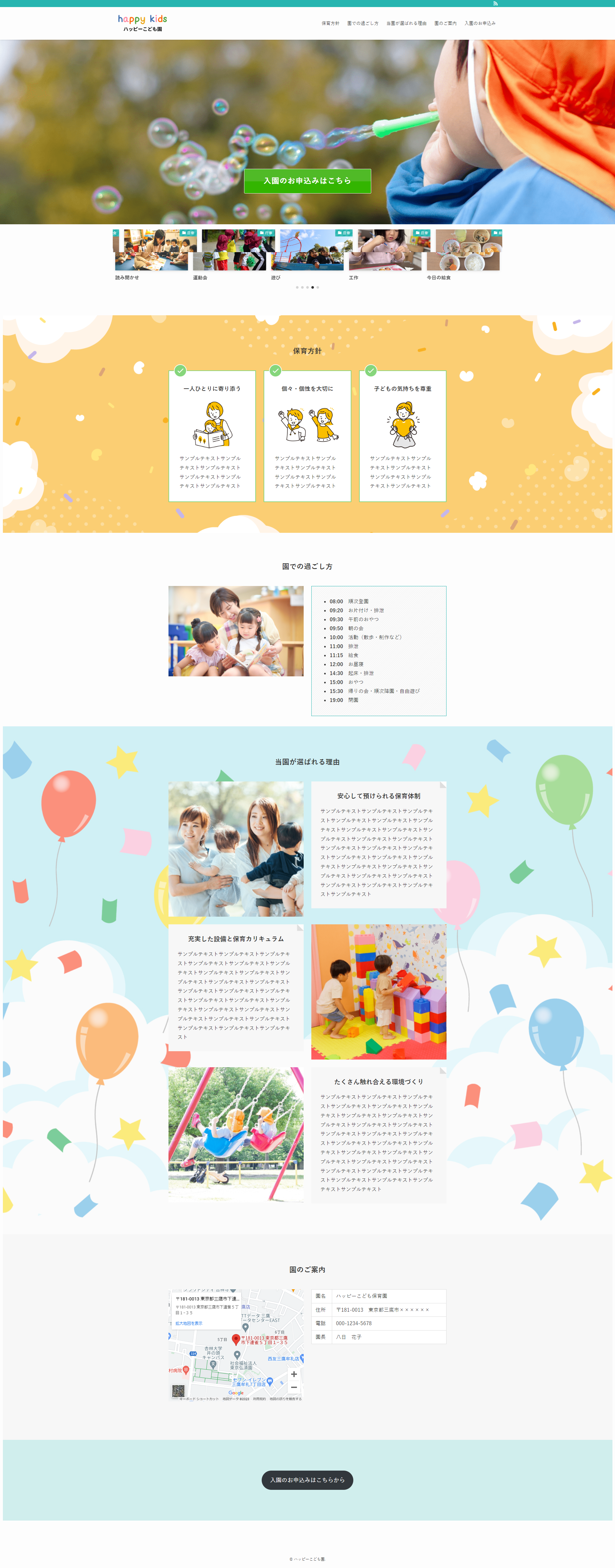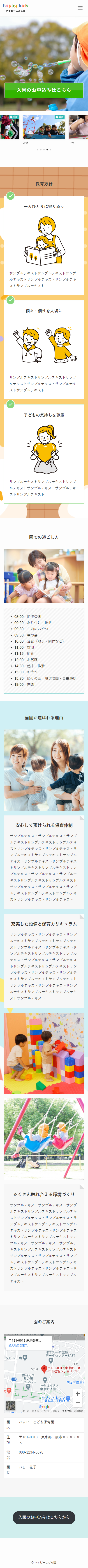 【サンプル】保育園 2023 6/01 サンプル ポップなデザイン 保育園 2023年6月1日2023年6月25日 PCで見た時の画面↓ スマートフォンで見た時の画面↓ 保育園のサンプルサイトになります。背景に可愛いイラストなどを使い、子供たちが明るく元気に過ごしている雰囲気を伝えるポップなデザインのサイトに仕上げました。下記URLから実際のサイトをご覧いただけます。 ハッピーこども園 サンプル ポップなデザイン 保育園 よかったらシェアしてね! URLをコピーしました! URLをコピーしました! 【サンプル】フラワーアレンジメント 【サンプル】高級クラブ 関連記事 【サンプル】工務店 2023年7月14日 【サンプル】高級クラブ 2023年6月10日 【サンプル】フラワーアレンジメント 2023年6月1日 【サンプル】税理士事務所 2023年5月29日
